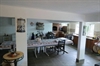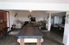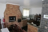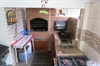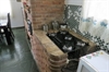 Salão de festas com churrasqueira, fogão a lenha e forno, e um banheiro.