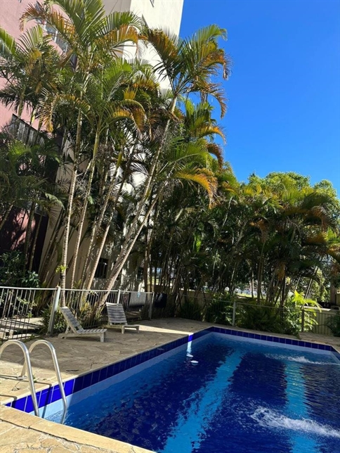 Área de lazer conta com churrasqueira, piscina, quadra poliesportiva e salão de festas.